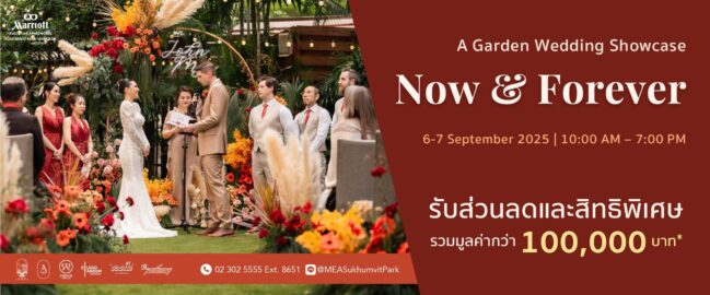 Year-End 2025 Wedding Promotion แพ็กเกจแต่งงานเริ่มต้นเพียง 99,999 บาทสุทธิ พร้อมรับสิทธิพิเศษ 3 ต่อ จากโรงแรม Avani Sukhumvit Bangkok