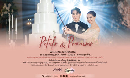 Petals & Promises WEDDING SHOWCASE ข้อเสนอสุดพิเศษ แพ็กเกจแต่งงานเริ่มต้นเพียง 99,999.- ณ โรงแรมอวานี สุขุมวิท กรุงเทพฯ