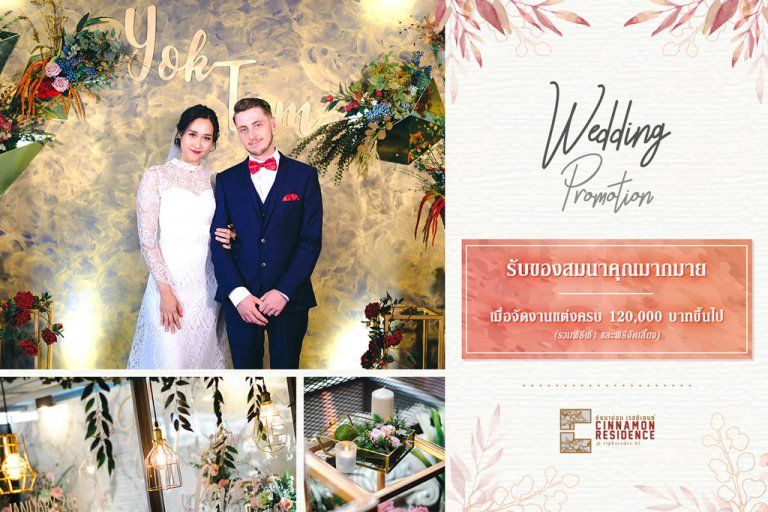 แพ็คเกจแต่งงานเริ่มที่ 120,000 บาท มาพร้อมโปรโมชั่นมากมาย จากโรงแรม ซินนาม่อน เรสซิเดนซ์