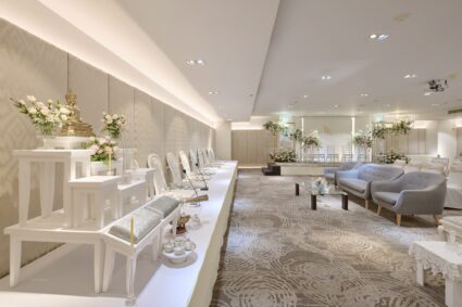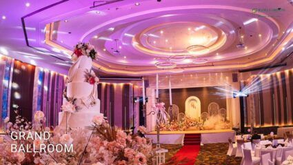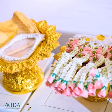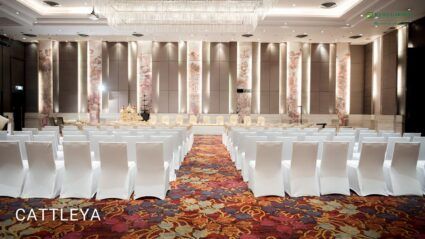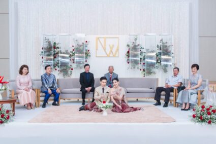 ตกแต่งเวทีพร้อมป้ายชื่อบ่าวสาว
