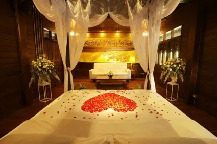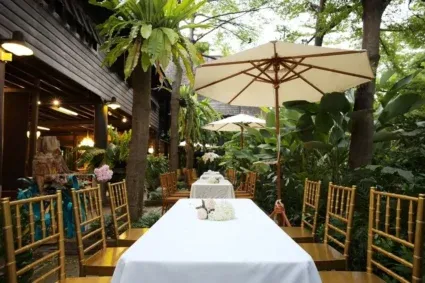 มนต์เสน่ห์ของความเป็นไทยที่งดงามและไม่เคยเลือนหายไปตามกาลเวลา ทำให้การจัดงานแต่งงานในเรือนไทยเป็นความฝันของคู่รักหลายๆ คู่ สำหรับคู่บ่าวสาวที่ต้องการจัดงานแต่งงานให้ถูกต้องตามประเพณีไทยอันทรงคุณค่า Weddinglist ได้รวบรวมสถานที่จัดงานแต่งงานเรือนไทยทั่วกรุงเทพฯ และปริมณฑล ที่มีสถาปัตยกรรมงดงามและมีแพ็กเกจครบวงจรมาฝากค่ะ จะมีเรือนไทยที่ไหนถูกใจคุณบ้างนั้น ไปชมพร้อมกันได้เลยค่ะ