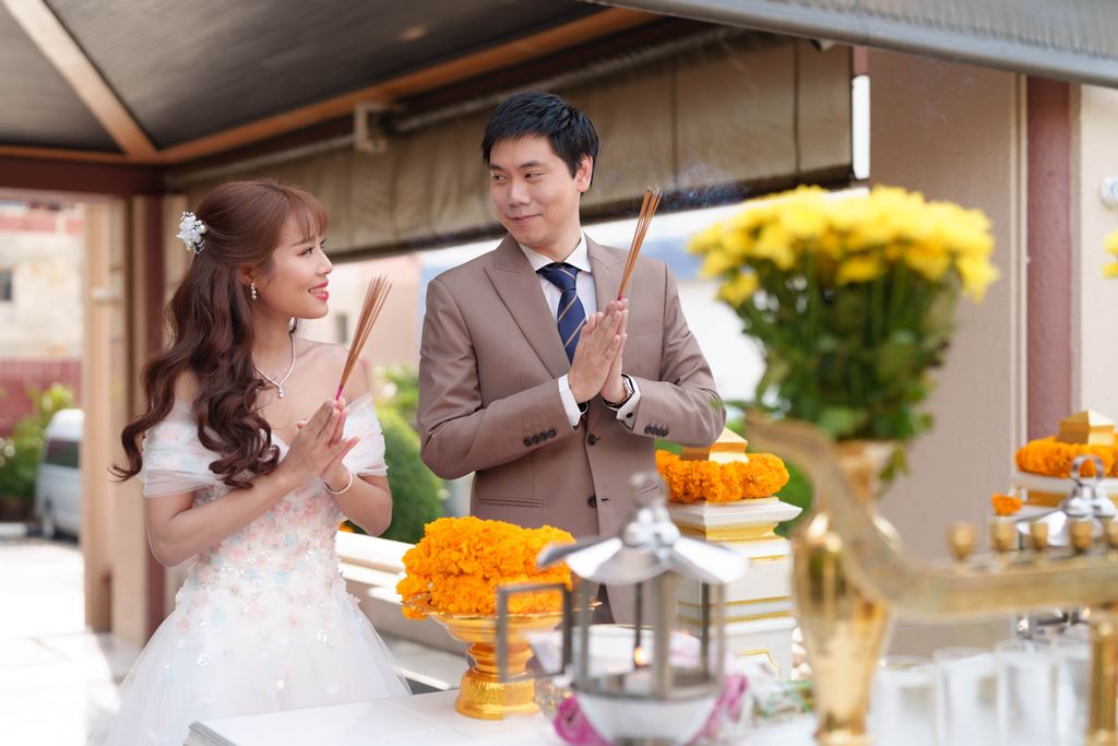 จัดงานพิธีมงคลสมรสตามฤกษ์ (หมั้นเช้าเลี้ยงเที่ยง)