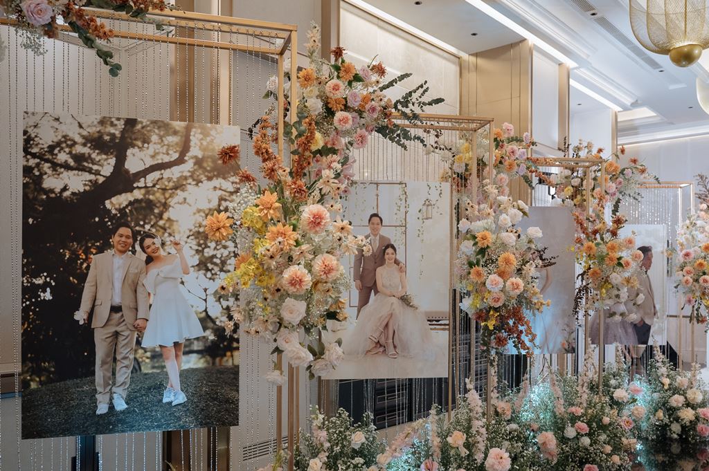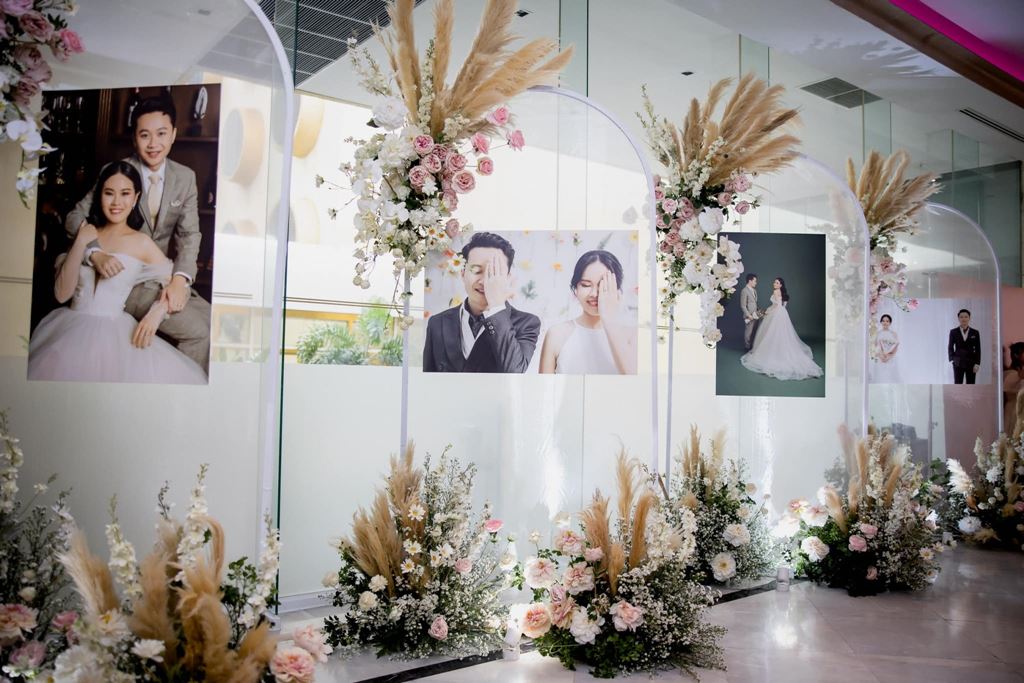 - ดอกไม้ตกแต่งโต๊ะรับลงทะเบียน, ซุ้มถ่ายภาพ, Backdrop พร้อมป้ายชื่อ