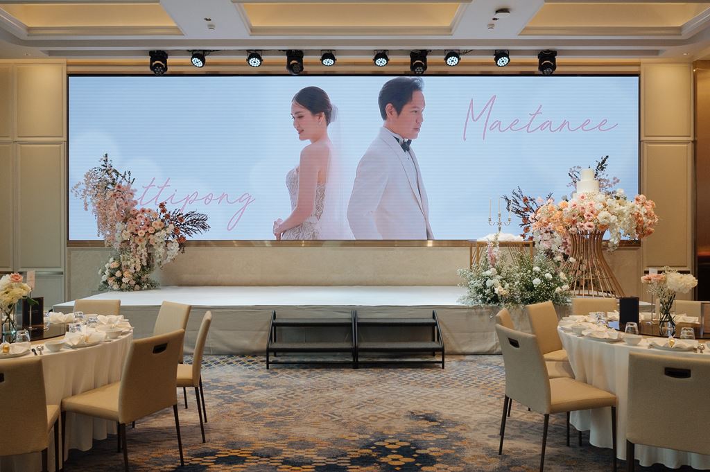 - ห้องจัดงานพร้อมตกแต่งดอกไม้