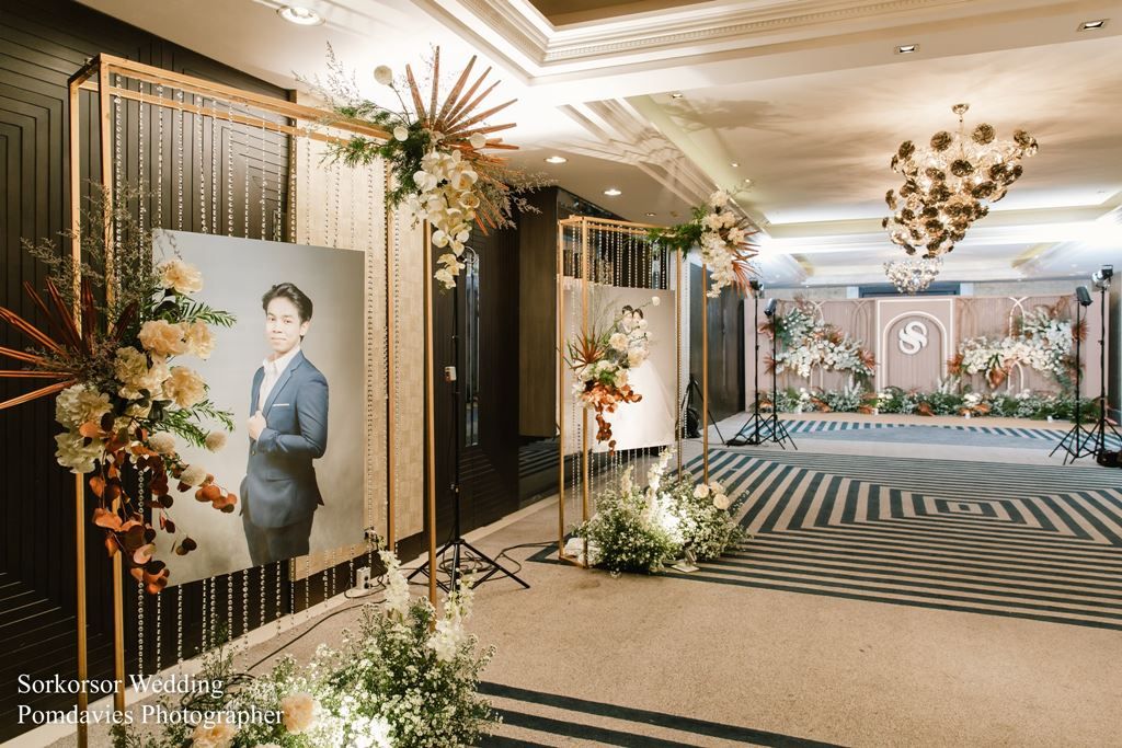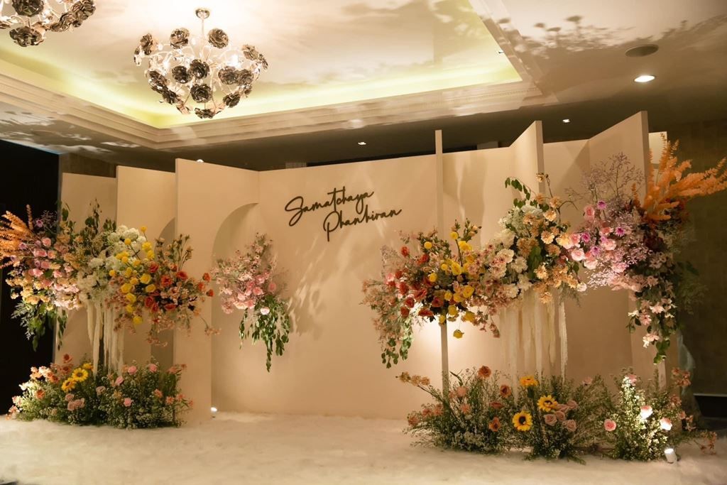 - แจกันดอกไม้ที่โต๊ะลงทะเบียน