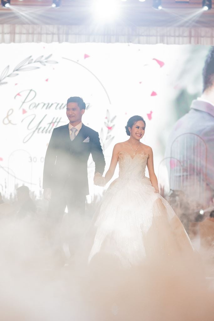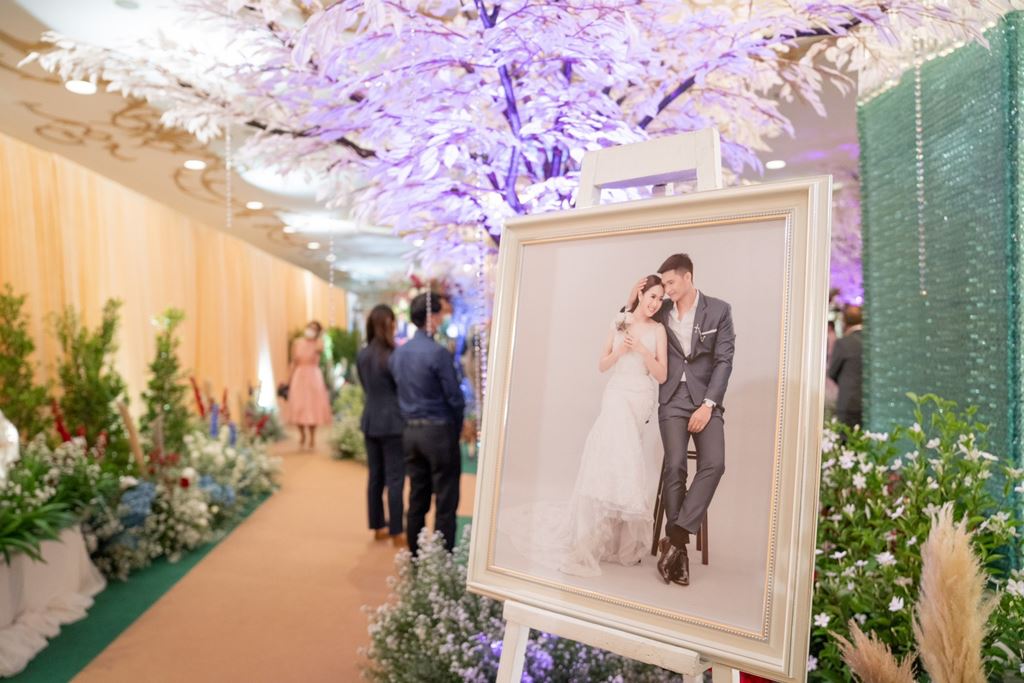 - ฉากหลังบนเวที พร้อมโลโก้ชื่อบ่าวสาว