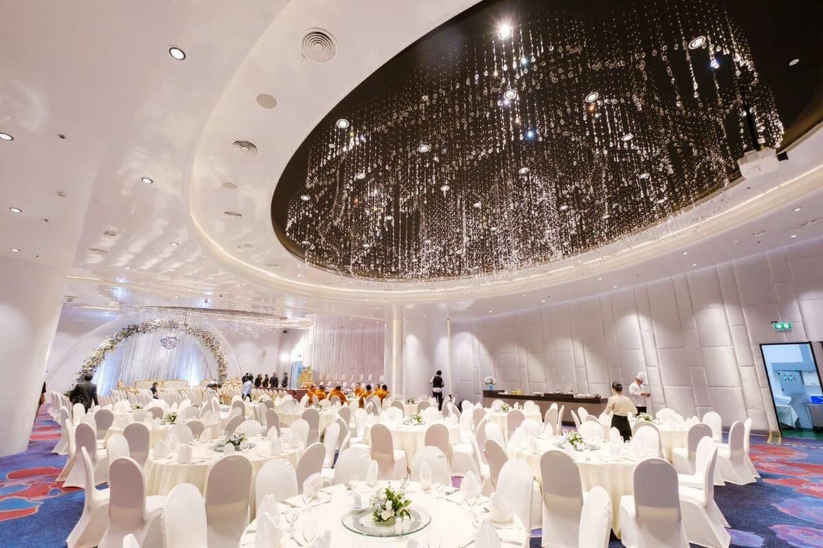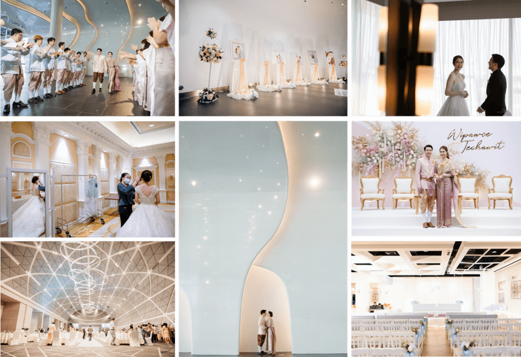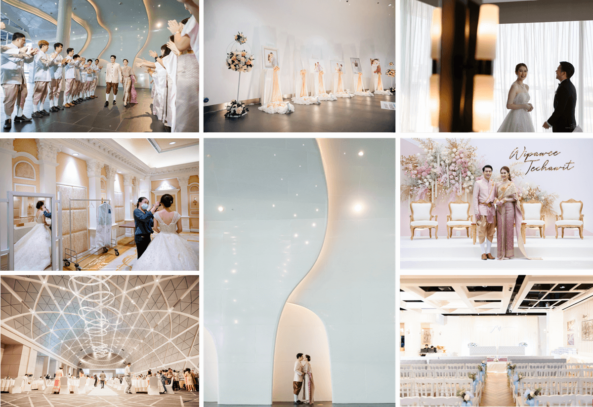 - พื้นที่จัดงานหลากหลายรูปแบบ: เรามีห้องจัดเลี้ยงจำนวนมาก ที่ตกแต่งหลากหลายสไตล์ รองรับแขกตั้งแต่ 100 ถึง 3,500 ท่าน แม้ในวันมหาฤกษ์ดีที่สถานที่จัดงานแต่งงานมักถูกจองเต็ม เราพร้อมรองรับคู่รักทุกคู่ด้วยพื้นที่เพียงพอและบริการที่ครบครัน