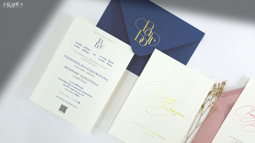 ADORA เข้าใจดีว่าการจัดงานแต่งงานเป็นช่วงเวลาที่แสนพิเศษ จึงได้จัดหาวัสดุหลากหลายแบบ อีกทั้งสามารถเพิ่มเทคนิคต่างๆได้มากมายให้กับการ์ดเชิญ อาทิ Foiled Lamina หรือ การ์ดแต่งงานแบบใสพร้อมปั๊มฟอยล์สุดหรู Colored Lamina หรือ การ์ดแต่งงานแบบใสพร้อมพิมพ์สีต่างๆ หรูแบบไม่เหมือนใคร Foiled Paper หรือ การ์ดแต่งงานที่ใช้กระดาษสีพิเศษ เช่น สีน้ำเงิน สีน้ำตาล พร้อมปั๊มฟอยล์ Letter Pressed หรือ การ์ดแต่งงานเลตเตอร์เพรส ใช้เทคนิคอัดจมในการแสดงลวดลายและข้อความ