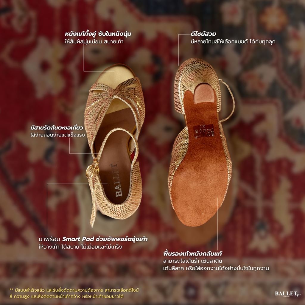- พื้นรองเท้าหนังกลับ สามารถใส่เต้นรำ เต้นลาติน เต้นลีลาศ หรือใส่ออกงานตามปกติได้