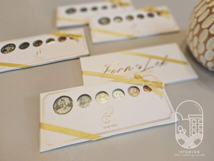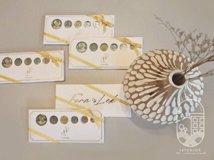 การออกแบบบรรจุภัณฑ์ของที่ระลึกงานแต่งงานของเราผสานเข้ากับสไตล์การ์ดเชิญของคุณอย่างลงตัว เพื่อให้แน่ใจว่าธีมงานแต่งงานของคุณมีความเป็นเอกภาพและมีเอกลักษณ์ ไม่ว่าจะเป็นแบบดั้งเดิมหรือแบบสมัยใหม่ เราสร้างสรรค์การออกแบบที่สวยงามซึ่งตรงกับธีมงานแต่งงานของคุณอย่างสมบูรณ์แบบ