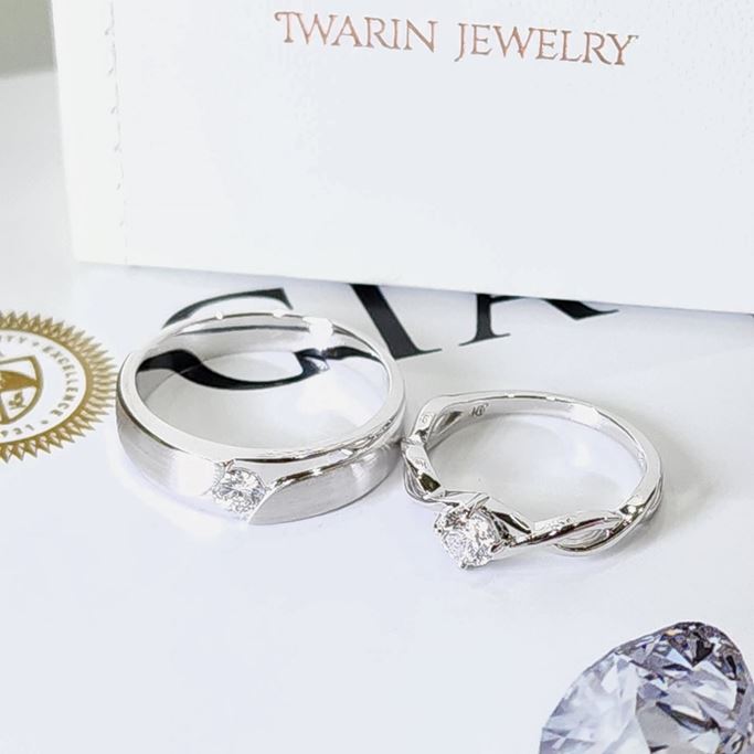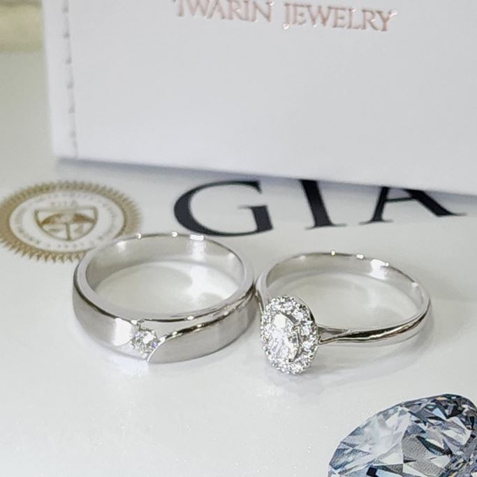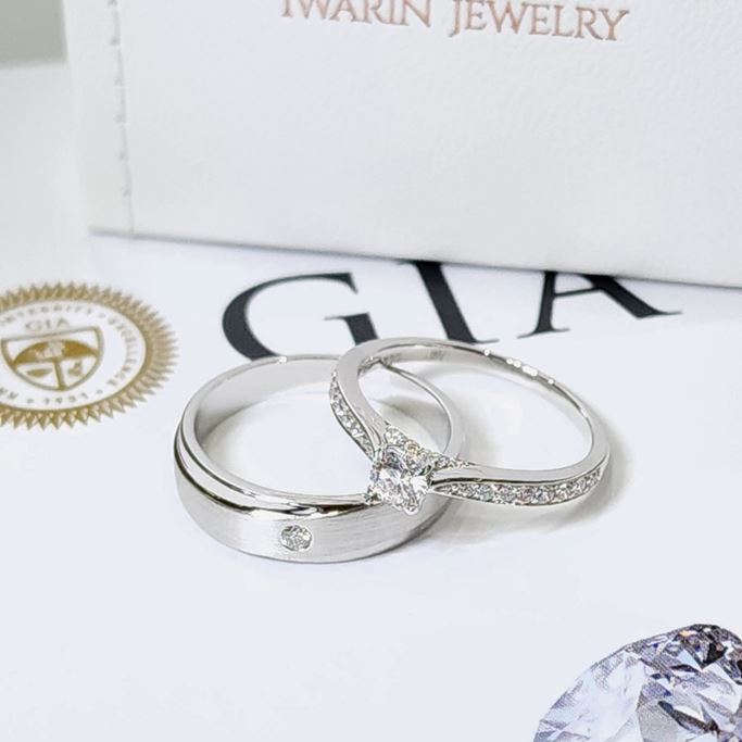 Iwarin Jewelry แหวนแต่งงาน แหวนคู่ ของขวัญวันเกิด วันครบรอบ แหวนหมั้น แหวนแต่งงาน เพชรใบเซอร์ GIA, HRD