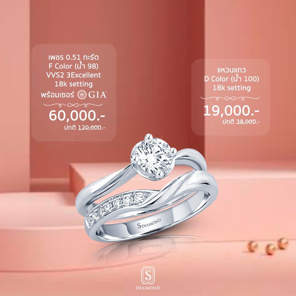 S.Diamond สรรสร้างความพึงพอใจอย่างไม่มีที่สิ้นสุด แหวนหมั้นเพชรคุณภาพมีใบ Cer GIA HRD