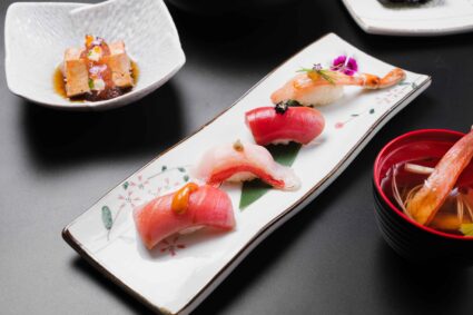 ซุปปลาคินเมอได ข้าวปั้นไข่หอยเม่น Otoro Inaniwa (บะหมี่เย็นสูตรดั้งเดิมโรยปลาทูน่าส่วนท้อง) Awabi Mushi (หอยเป๋าฮื้อญี่ปุ่น) Kagoshima Wagyu Steak และอื่นๆ อีกมากมาย