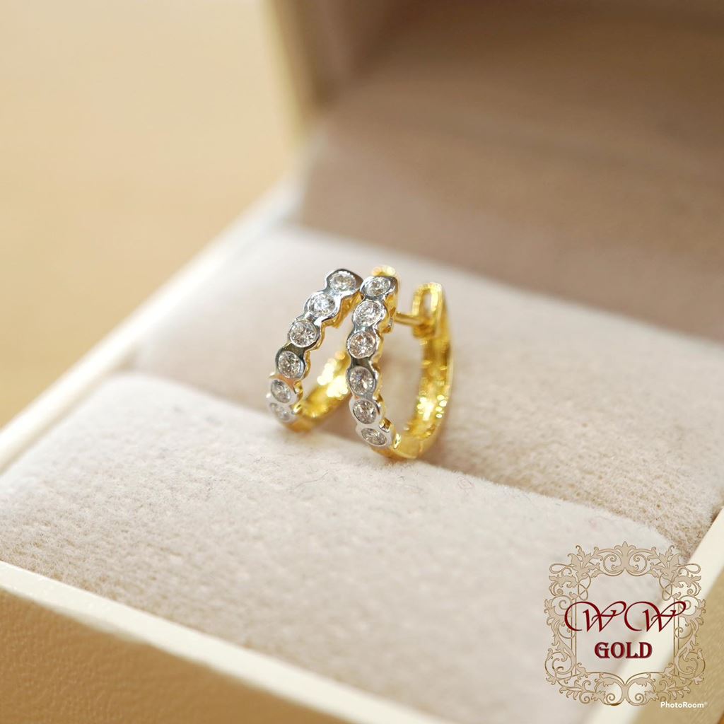 งานจิวเวลรี่ตัวเรือนทองคำแท้ 18k ลูกค้าสามารถเลือกว่าจะประดับด้วยเพชรเบลเยียมแท้ หรือเพชรสังเคราะห์ (CZ)