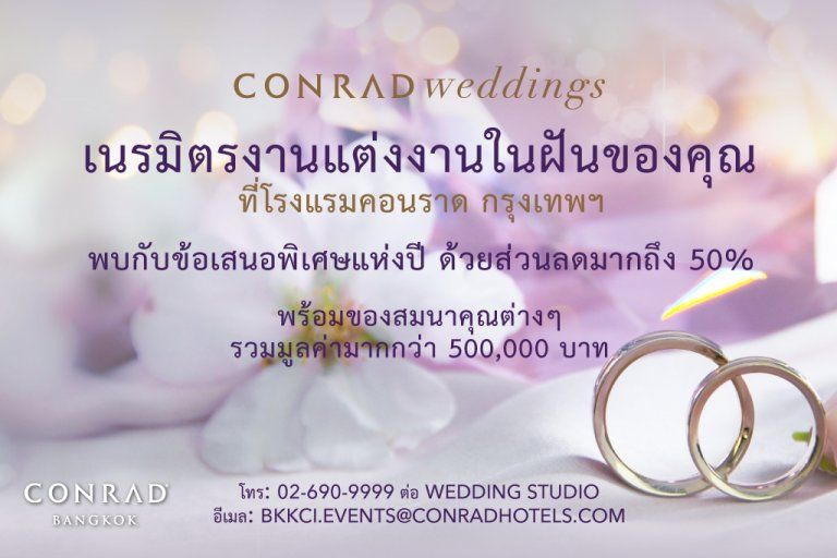 Conrad Bangkok นำเสนอแพ็กเกจ จัดงานแต่ง ที่หลากหลาย เพื่อตอบโจทย์ทุกความต้องการและงบประมาณของคู่บ่าวสาว