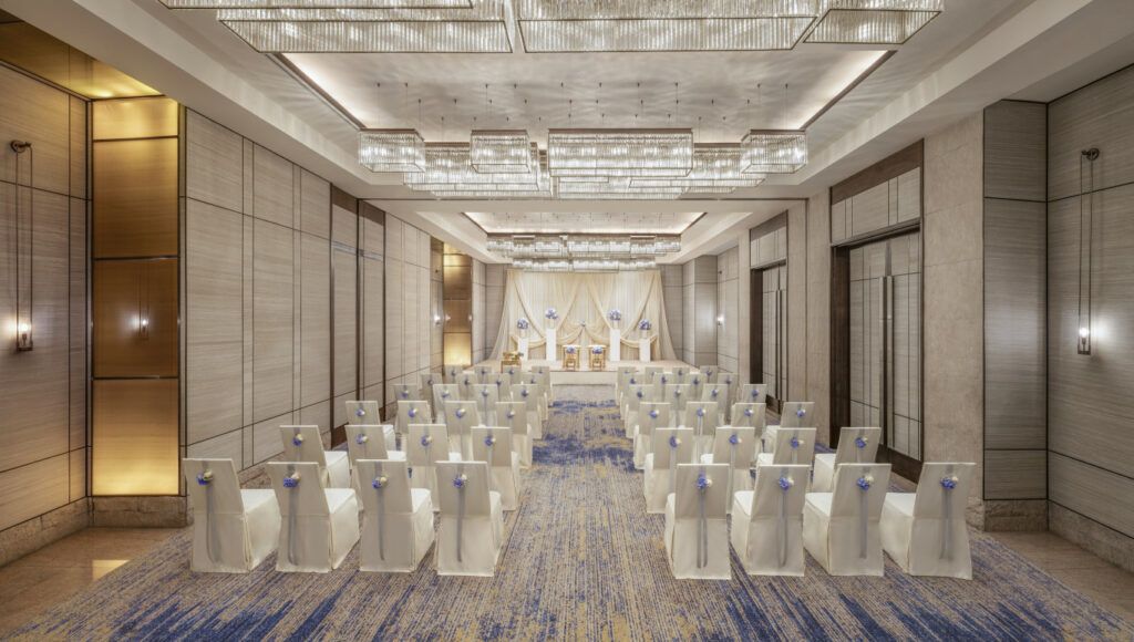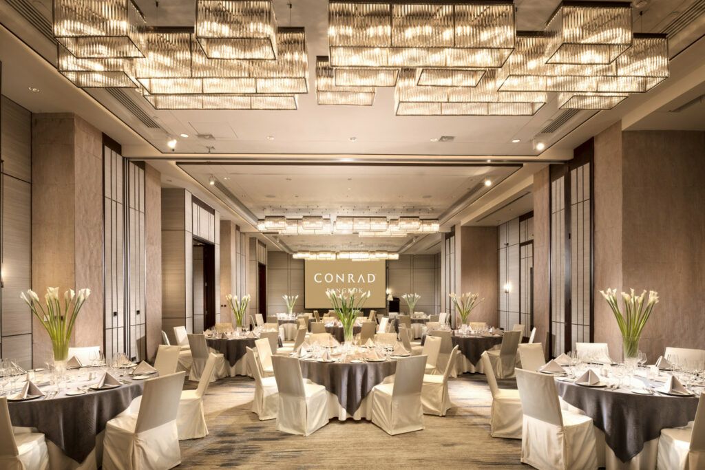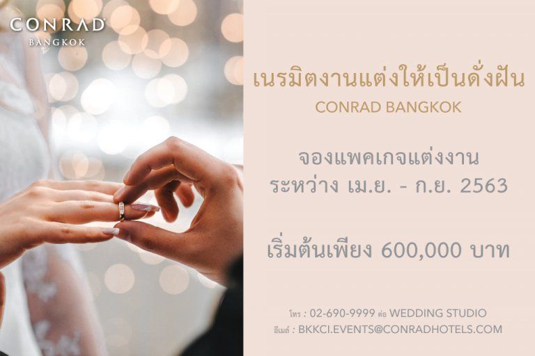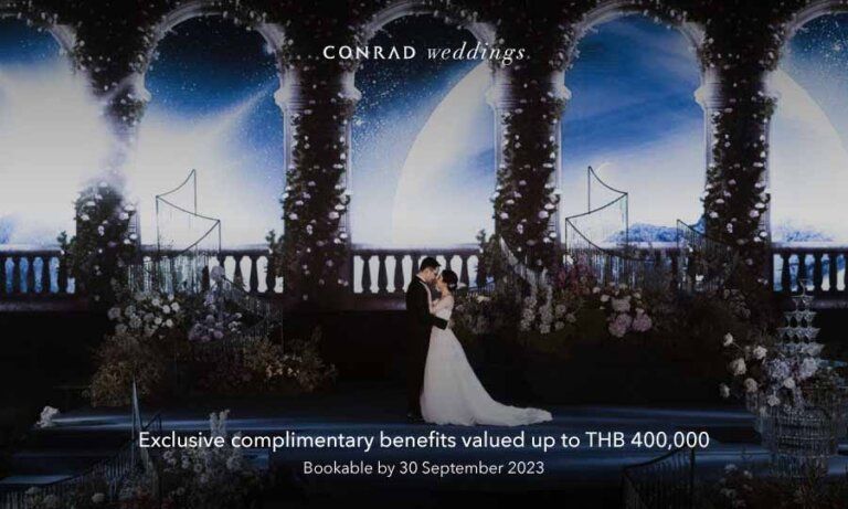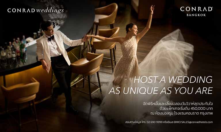 สัมผัสประสบการณ์งานวิวาห์ที่สง่างามและหรูหราเหนือระดับ ที่ Conrad Bangkok ใจกลางย่านธุรกิจของกรุงเทพฯ ทุกรายละเอียดถูกรังสรรค์ขึ้นอย่างประณีตในห้องแกรนด์บอลรูมไร้เสาอันโอ่อ่า เพื่อมอบค่ำคืนแห่งการเฉลิมฉลองที่น่าจดจำและสมบูรณ์แบบที่สุด