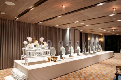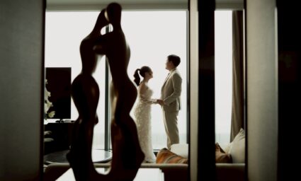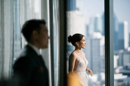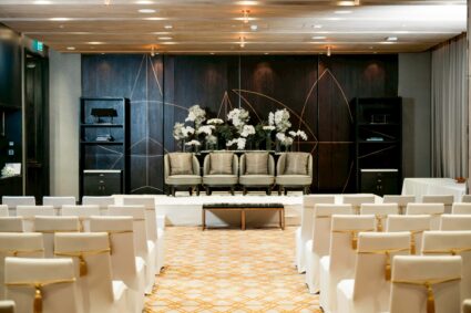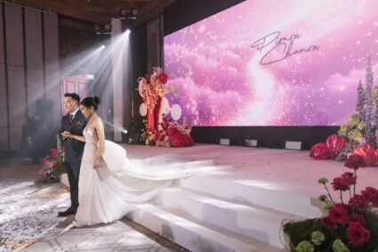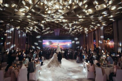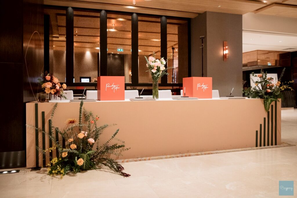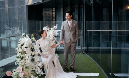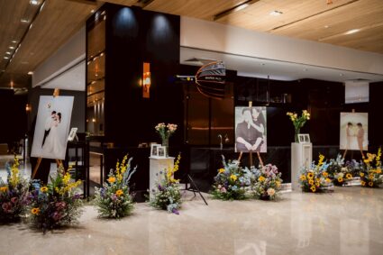 - Photogenic Venue: โรงแรมตกแต่งด้วยกระจกและเส้นสายสีทอง ให้ความรู้สึกหรูหราและโปร่งสบาย มีมุมถ่ายรูปสวยๆ เยอะมาก ไม่ว่าจะเป็นบริเวณบันไดวน หรือ Foyer หน้าห้องจัดเลี้ยง