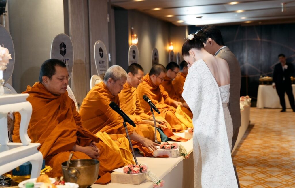 4. มีแพ็กเกจพิธีเช้าแบบไหนบ้าง? มีครบทุกรูปแบบครับ ทั้งพิธีสงฆ์ (เริ่ม 15,000 บาท), พิธีหมั้นไทย/ยกน้ำชา (เริ่ม 40,000 บาท) และพิธีคริสต์ (เริ่ม 55,000 บาท)