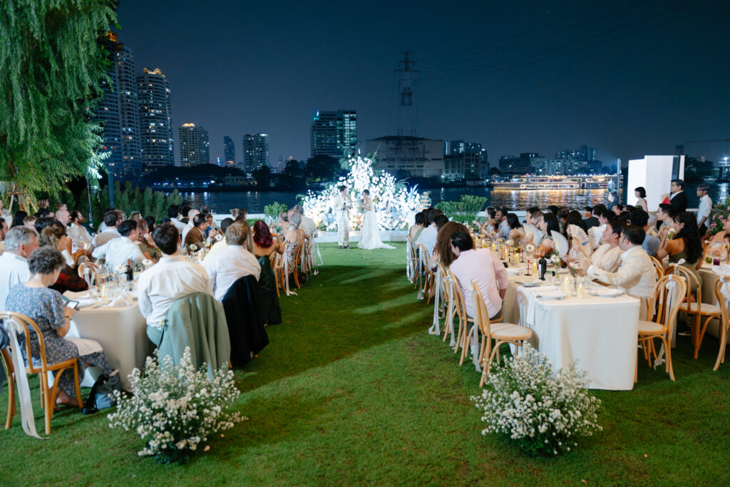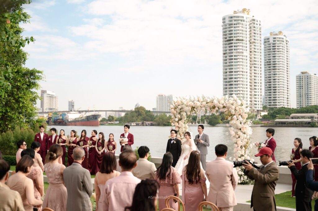 - Riverside Garden: พื้นที่สวนริมน้ำ บรรยากาศโปร่งสบาย เหมาะสำหรับพิธีเช้าที่อบอุ่น หรือพิธีสวมแหวน (Vow Ceremony) โดยมีฉากหลังเป็นแม่น้ำเจ้าพระยา