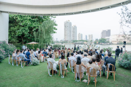 - Riverside Garden: พื้นที่สวนริมน้ำ บรรยากาศโปร่งสบาย เหมาะสำหรับพิธีเช้าที่อบอุ่น หรือพิธีสวมแหวน (Vow Ceremony) โดยมีฉากหลังเป็นแม่น้ำเจ้าพระยา