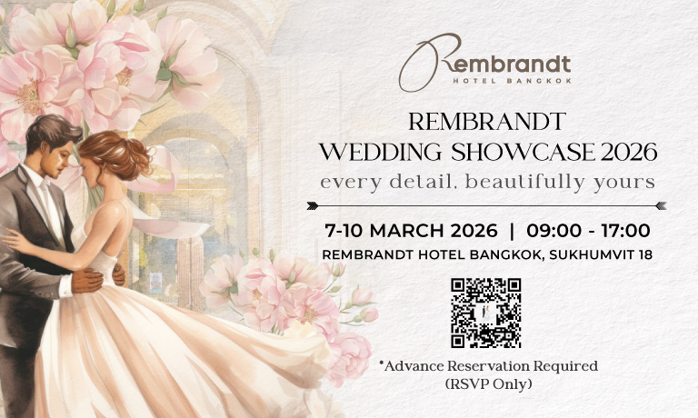 Rembrandt Hotel นำเสนอแพ็กเกจงานแต่งงานที่คุ้มค่า โดยปรับราคาให้เหมาะกับงบประมาณคู่รักในปี 2026 จากข้อมูลบน Rembrandthotelbangkok.com และ Weddinglist.co.th: