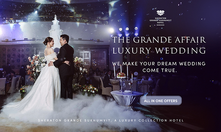 เรื่องราวความรักของคุณคู่ควรกับการเฉลิมฉลองที่สง่างามและน่าจดจำที่สุด ที่ โรงแรม เชอราตัน แกรนด์ สุขุมวิท ทุกโมเมนต์ในวันสำคัญจะถูกรังสรรค์ขึ้นอย่างวิจิตรบรรจง ด้วยมนต์เสน่ห์ของห้องแกรนด์บอลรูมสุดคลาสสิก พร้อมบริการเหนือระดับ ณ แลนด์มาร์คใจกลางกรุงเทพฯ ที่จะสร้างความประทับใจให้แก่แขกผู้มีเกียรติทุกคน