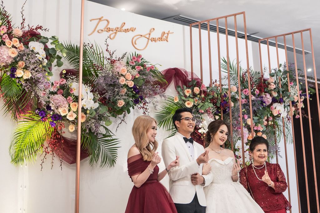 - การตกแต่งสถานที่แต่งงานโดยหนึ่งในพันธมิตรตกแต่งของโรงแรม (รวมถึงฉากถ่ายรูป, แกลเลอรีรูปภาพ, การตกแต่งเวที, และการตกแต่งดอกไม่ที่โต๊ะเค้ก)